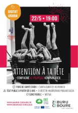 Trois jongleuses, une baignoire, cent balles, onze massues… et une joyeuse envie d’en découdre avec la gravité ! Avec humour et tendresse, Attention à ta tête revisite les codes du cirque en transformant la maladresse, l’imprévu et la chute en matière à jeu. Entre jonglage, antipodisme, danse et théâtre d’objets, les trois interprètes inventent un univers décalé où tout devient possible : les balles roulent, les massues s’échappent, les corps s’emmêlent — et pourtant, tout trouve sa place. Ensemble, elles célèbrent la persévérance plutôt que la performance, l’élan collectif plutôt que la perfection. Un moment drôle, sensible et généreux, où l’art du cirque devient un espace de liberté et de solidarité.